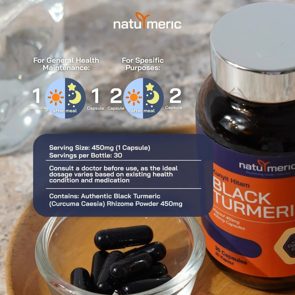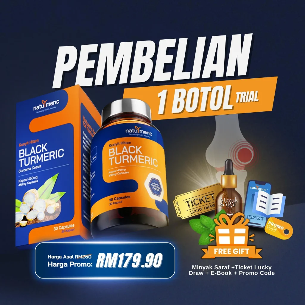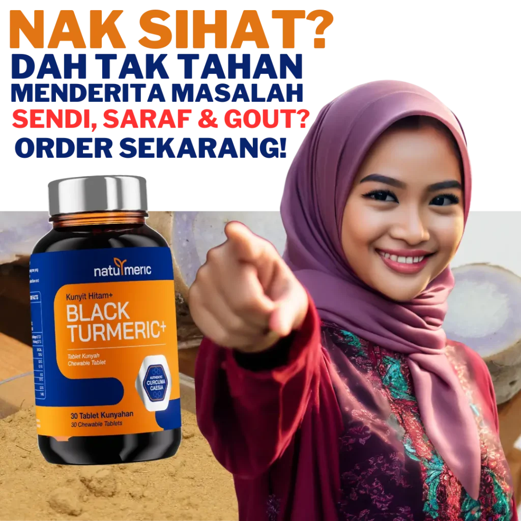 Black Turmeric dalam NATURMERIC mengandungi lebih kurang 10x lebih banyak curcuminoid berbanding kunyit biasa, menjadikannya lebih berkesan untuk melawan keradangan, sakit sendi, dan menurunkan asid urik.