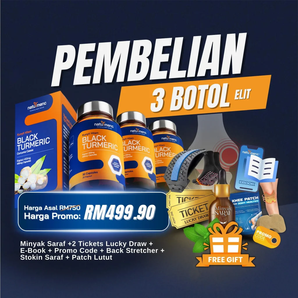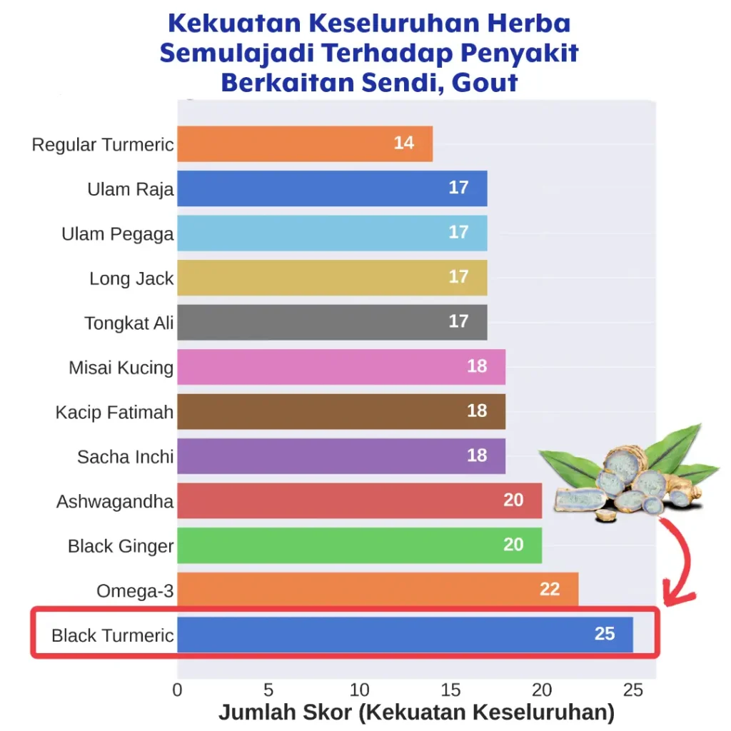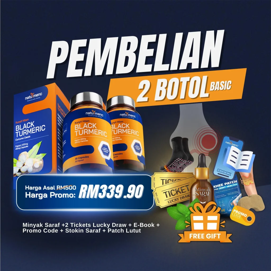Black Turmeric dalam NATURMERIC mengandungi lebih kurang 10x lebih banyak curcuminoid berbanding kunyit biasa, menjadikannya lebih berkesan untuk melawan keradangan, sakit sendi, dan menurunkan asid urik.